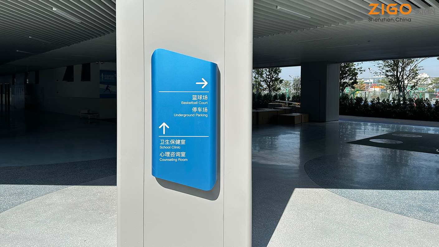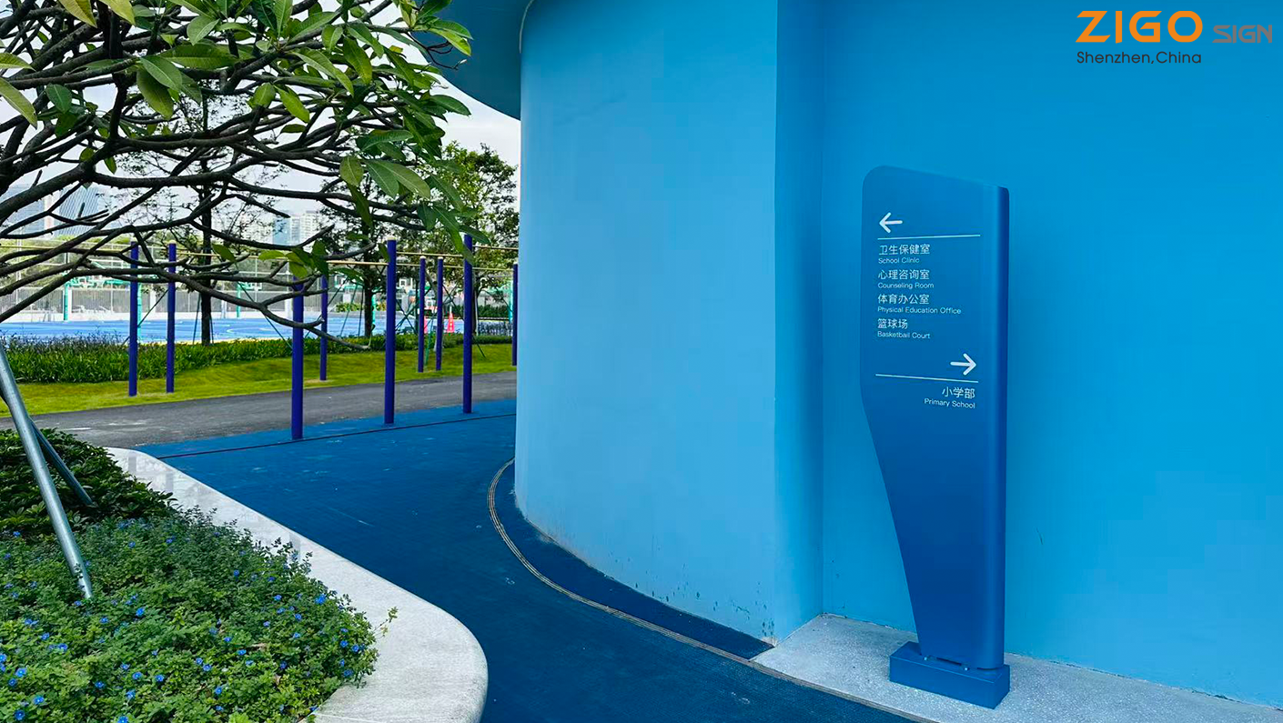 ZIG0 Design fick i uppdrag att designa skylt- och vägvisningssystemet för Qianwan School i Bao'an District, Shenzhen. Hela processen – från detaljerad designutveckling till tillverkning och installation av skylt- och vägvisningssystemet – slutfördes inom sex månader.